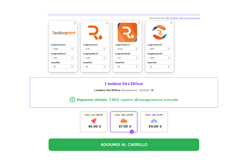 - Ottimizzazione Automatica: L’IA analizza le immagini importate e determina la disposizione migliore per massimizzare l’uso dello spazio disponibile, riducendo al minimo gli sprechi di materiale.