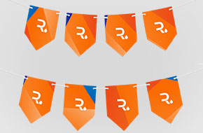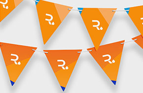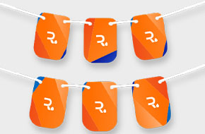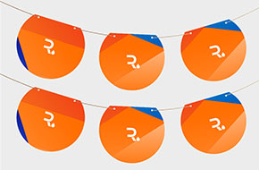 La ghirlanda in carta, invece, è consigliata per utilizzi in interno. Offre un’eccellente qualità di stampa dai colori vividi, è economica e perfetta per eventi occasionali, decorazioni stagionali o allestimenti temporanei. Entrambe le soluzioni permettono una personalizzazione totale in base all’identità visiva desiderata.