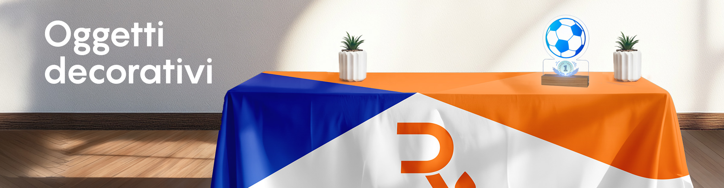 Per creare l'atmosfera ideale, ti offriamo la possibilità di personalizzare 3 oggetti decorativi: la sedia a sdraio, la tovaglia pubblicitaria e le lettere 3D. La sedia a sdraio è ideale per creare un'atmosfera rilassata, cool e divertente. Il suo tessuto personalizzabile permette di creare un supporto con i colori dell'azienda per rappresentarla. Per uso interno o esterno, la sedia a sdraio piacerà al tuo cliente per il suo comfort e il suo valore pubblicitario. In secondo luogo, Realisaprint.it propone la tovaglia pubblicitaria. Disponibile in 4 forme (rettangolare, rotonda, su misura e il runner da tavolo), la tovaglia è un ottimo modo per creare un'atmosfera scegliendo le immagini e i colori appropriati. Questo rende facile creare un'atmosfera moderna, vintage, e molti altri tipi di atmosfera. Infine, offriamo lettere 3D. Questo mezzo aggiunge un tocco elegante alla decorazione. Permette di scrivere un parola importante e portare così dinamismo alla decorazione. Le lettere 3D sono affidabili perché, qualunque sia la scelta del materiale, sono garantite da 7 a 10 anni.
