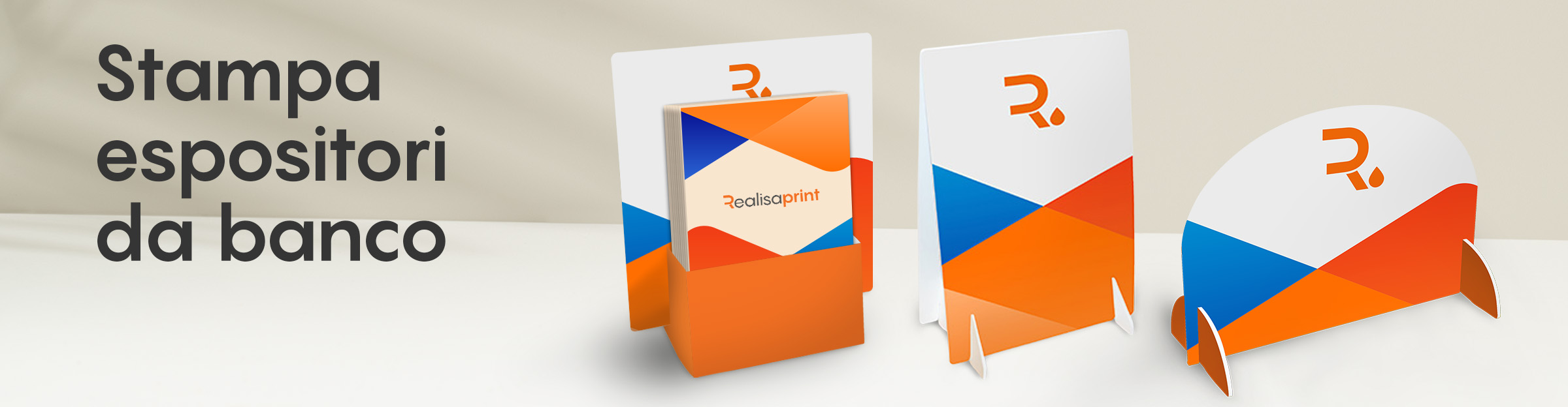 Se stai cercando il modo migliore per aiutare i tuoi clienti a promuovere le loro offerte e informazioni, gli espositori da tavolo di Realisaprint.it sono la soluzione ideale. Offriamo una vasta gamma di espositori da banco e da tavolo, progettati per soddisfare tutte le esigenze comunicative dei tuoi clienti, il tutto ai prezzi più competitivi d'Italia.
