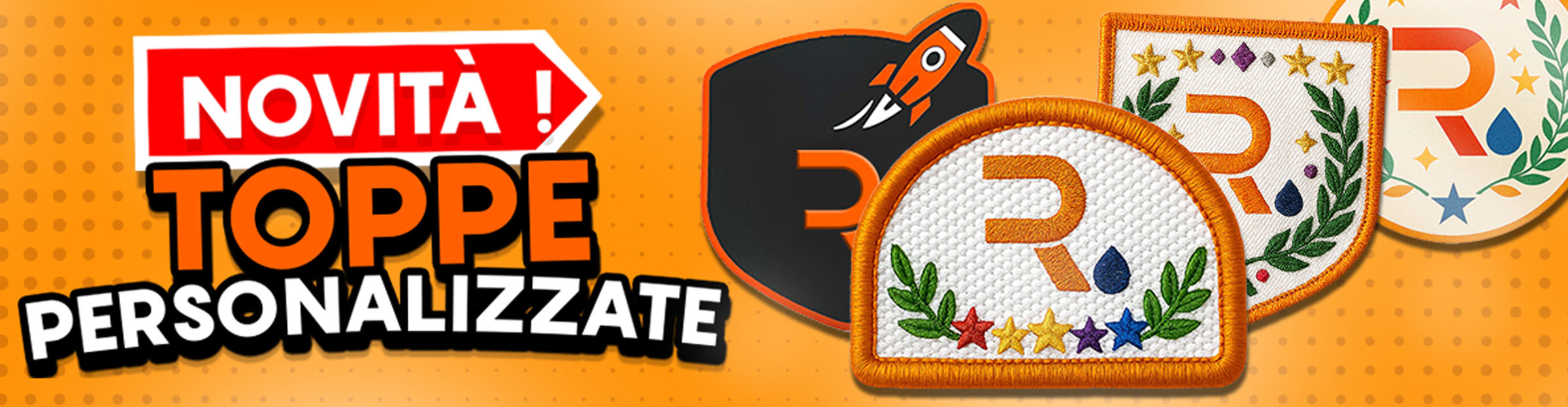 Toppa termoadesiva: pensata per essere applicata rapidamente con il calore. È ideale per campagne promozionali su larga scala, perché riduce i tempi di applicazione ed è accessibile a un vasto pubblico. La tenuta è buona, ma può essere limitata su tessuti tecnici o molto sollecitati.